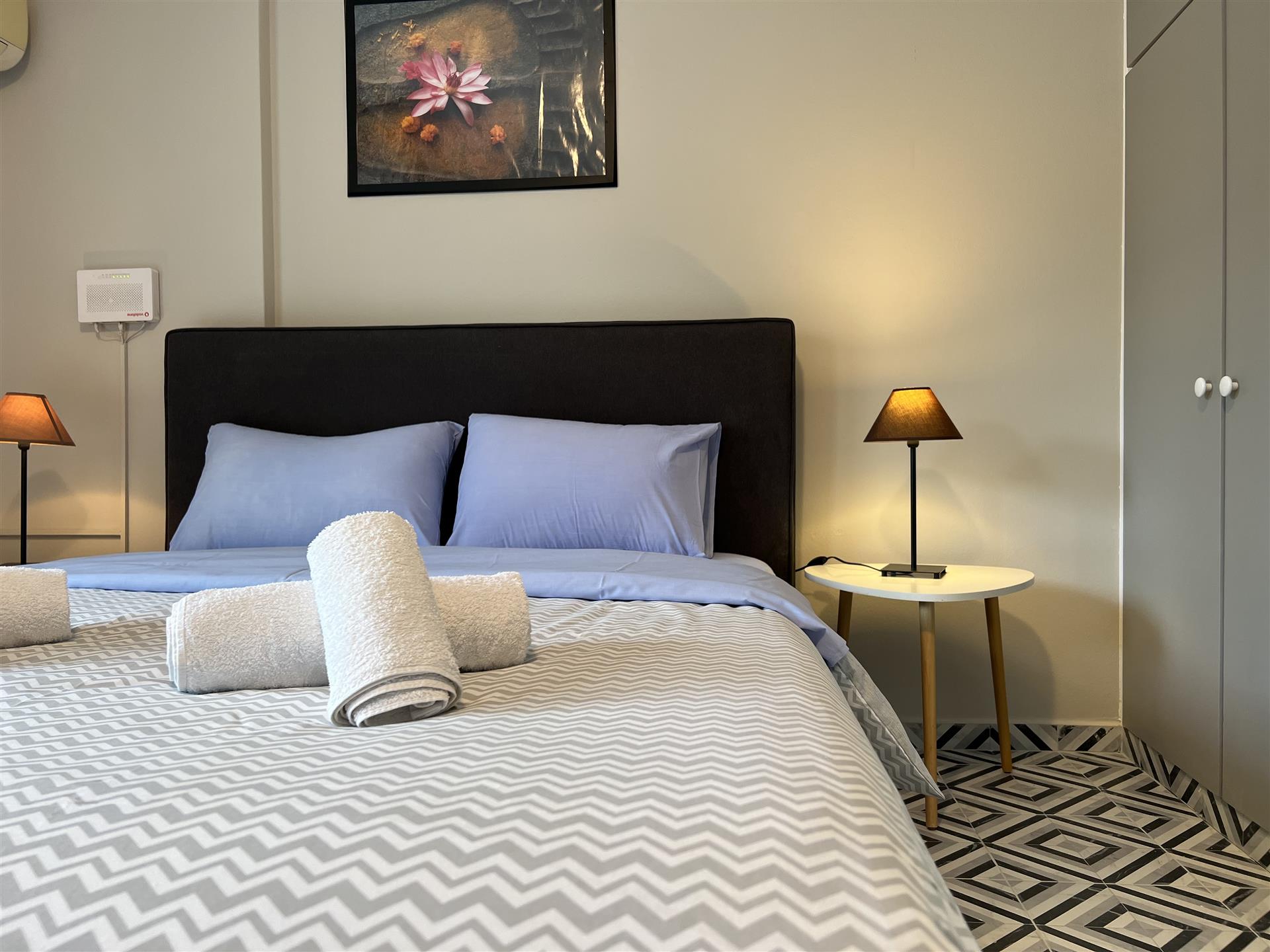 The apartments are self-served, don’t contain cleaning materials and essentials and for hygiene reasons sheets, covers and towels are not included, which the tenant must bring him/herself